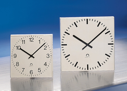 Стрелочные часы Moderna предназначены для использования в помещениях и имеют прочный металлический квадратный корпус. Циферблат закрыт выпуклым акриловым стеклом. В линейке прелставлены чтрелочные часы с двумя типами циферблатов размером 30 и 40 мс и пятью типами часовых механизмов. Имеется возможность составления двухсторонних часов с помощью монтажного комплекта.