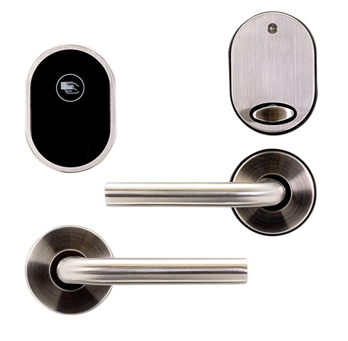 Электронный замок для гостиниц HSU-9902-S раздельным блоком считывателя (контроллера) и ручками, выполнен в классическом цвете матовое серебро. В комплекте с замком имеются уплотнительные резинки под блок считывателя и батарейный отсек, ручки. Это обеспечивает дополнительную устойчивость к воде и пыли, позволяет производить установку электронного замка для гостиниц на уличных дверях.