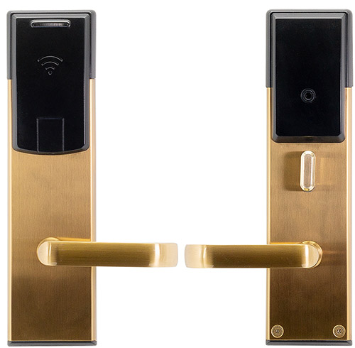 Электронный замок для гостиниц HSU-9936-G - RFID Mifare замок, накладки которого выполнены из нержавеющей стали марки AISI 304, а электронные компоненты защищены компаундом. Это позволяет устанавливать замок в условиях повышенной влажности.