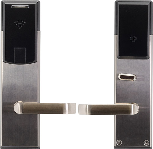 Электронный замок для гостиниц HSU-9936-S - RFID Mifare замок, накладки которого выполнены из нержавеющей стали марки AISI 304, а электронные компоненты защищены компаундом. Это позволяет устанавливать замок в условиях повышенной влажности.