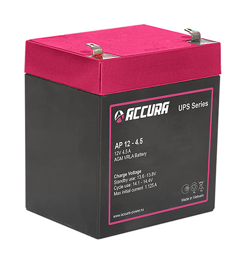 Свинцово-кислотные аккумуляторы Accura Power серии AP являются герметизированными (AGM), клапанно-регулируемыми (VRLA), необслуживаемыми батареями универсального класса. Срок службы в буферном режиме до 6 лет (25 °C).
