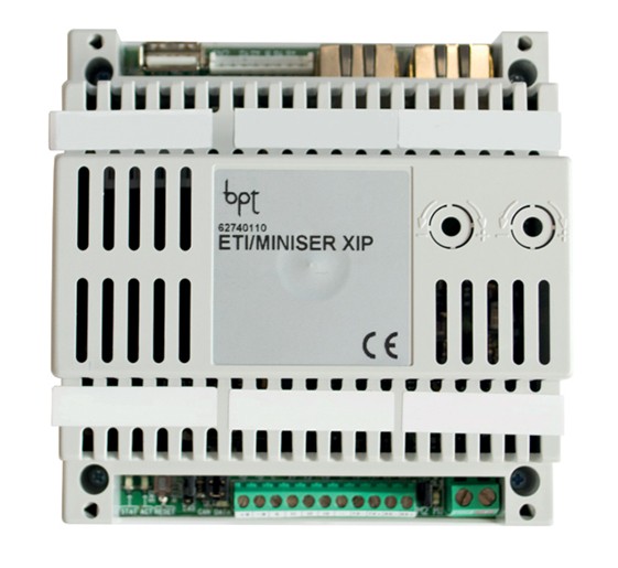 BPT ETI/miniSER — сервер системы XIP с двумя сетевыми интерфейсами. Устройство предназначено для установки в качестве основного сервера в системах малого и среднего размеров или в проектах частного жилья для расширения возможностей одноабонентской системы — там, где не требуется использовать весь функционал XIP-сервера ETI/SER, который может включать в себя абонентское программное обеспечение или ПО для пульта консьержа.