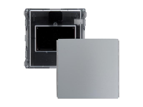 Модуль в корпусе из технополимера с фронтальной заглушкой из натурального сатинированного анодированного алюминия. Класс защиты от ударов IK07, от воды и пыли IP54.