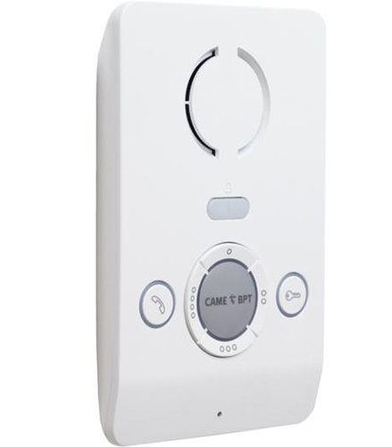 BPT PEC IP WH абонентское устройство hands-free аудио IP PERLA — это самое простое и недорогое аудиоустройство в линейке сетевых IP-домофонов BPT. Технически устройство представляет собой настенный домофон с двумя главными клавишами, позволяющими открывать дверь и принимать вызов, а также центральным кольцевым переключателем, на котором имеются программируемые кнопки для активации дополнительных команд и/или функций.