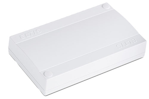 Коммутация — винтовые колодки. Малогабаритный плоский корпус для удобства размещения в нишах слаботочных стояков или боксах. Предусмотрены отверстия для крепления на стену и зажим для DIN-рейки. Планка фиксации кабелей внутри корпуса для предотвращения «выдергивания». Конструкция крышки корпуса позволяет производить опечатывание для выявления несанкционированного вскрытия.