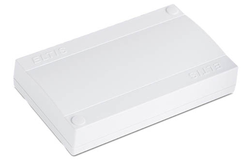 Коммутация — винтовые колодки. Малогабаритный плоский корпус для удобства размещения в нишах слаботочных стояков или боксах. Предусмотрены отверстия для крепления на стену и зажим для DIN-рейки. Конструкция крышки корпуса позволяет производить опечатывание для выявления несанкционированного вскрытия.
