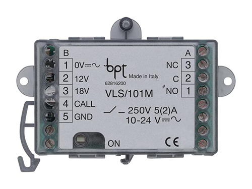 Реле снабжено коммутирующими контактами импульсного типа (сила тока 5 A резистивная, 2 A индуктивная, максимальное напряжение: ~250 В) и активируется постоянным/переменным током от 10 до 24 В или же слаботочными сигналами из системы. Необходимо электропитание 10–24 В (~/=), 40 мA макс.