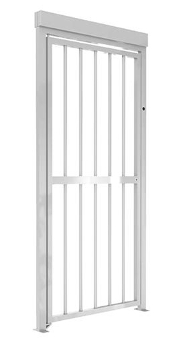 Калитка полноростовая электро-механическая, для эксплуатации внутри помещений и на открытом воздухе. Корпус из оцинкованной окрашенной стали. Створка двухсторонняя 900 мм. из нержавеющей стали AISI 304 с электрозамком и доводчиком.