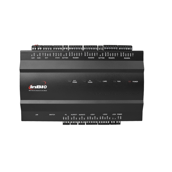 Биометрический контроллер ZKTeco inBio260 используется для построения высокобезопасных точек доступа, когда контроллер находится внутри помещения, а снаружи находится только считыватель идентификатора пользователя. На базе inBio 260 строятся биометрические системы контроля доступа с подключением считывателей отпечатков по RS485 интерфейсу и бесконтактные системы контроля доступа с подключением считывателей бесконтактных карт по Wiegand интерфейсу.