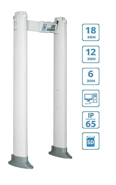 Блокпост РС X 1800 MK - 18/12/6-зонный арочный металлодетектор. Сверхпрочный с уровнем пылевлагозащиты IP-65. Оснащен новейшей функцией - регистратором событий с SD-card. Наличие «сухих контактов», а также три способа подключения к сети (справа, слева, сверху).Безвредны для человека/