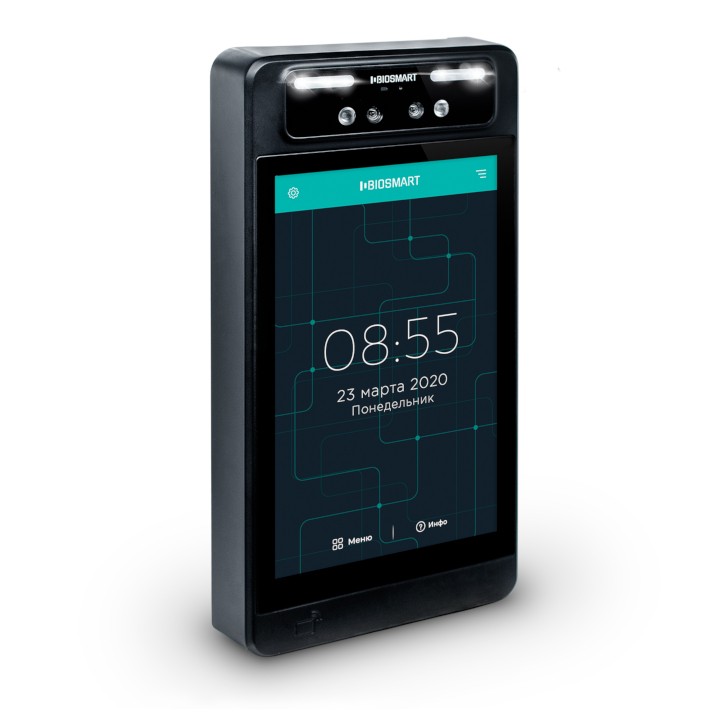 BioSmart Quasar — терминал для биометрической идентификации по геометрии лица. Предназначен для организации систем контроля доступа, учета рабочего времен, биоэквайринга и других задач. Подходит для применения в коммерческих организациях, государственных учреждениях, на объектах малого, среднего и крупного бизнеса. Терминал BioSmart Quasar был спроектирован исходя из более чем 10-летнего опыта разработки биометрических систем и сочетает лучшие мировые технические решения.