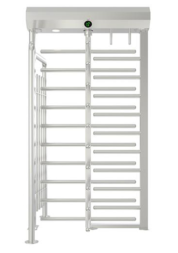 Автоматический моторизованный полноростовый турникет с корпусом из оцинкованной окрашенной стали. Ротор и планки из нержавеющей стали AISI 304. Четыре сектора по 90 град. Встроенный блок управления. Индикатор направления движения. Освещение зоны прохода. Встроенный блок питания.