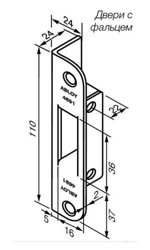 Abloy 4691 — запорная ответная планка для внутренних сплошных дверей с фальцем.