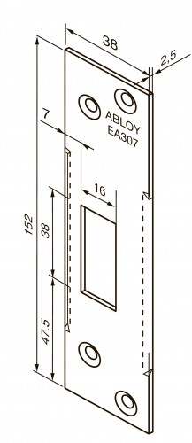 Abloy EA307 — запорная планка 2,5 мм скандинавского стандарта для металлических сплошных и узкопрофильных дверей.