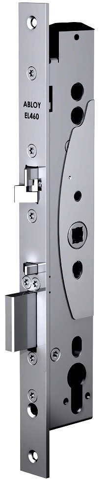 Abloy EL460 — электромеханический замок с управлением от ручек для внутренних профильных дверей со средней проходимостью (такие двери обычно встречаются в торговых помещениях, больницах, образовательных центрах, офисах). Электрически управляемая ручка открывает замок, когда электрическое управление включено (нормально закрыт) / выключено (нормально открыт). Замок автоматически блокируется при закрывании двери и всегда открывается от цилиндра.