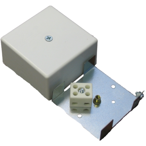 Основу коробки составляет стальной оцинкованный корпус. Верхняя часть коробки дополнительно закрыта декоративной пластмассовой крышкой, плавление и горение которой не образует токопроводящих участков. В боковых стенках крышки имеются специальные легкоудаляемые профили для ввода кабеля, металлорукава или кабель-канала. Внутри корпуса коробки установлены керамические клеммные колодки, обеспечивающие соединение «под винт», и клемма заземления «РЕ». Крепление коробки к элементам конструкций рекомендуется осуществлять с применением винтов или саморезов на металлические дюбели.