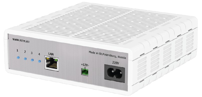 РИТМ Преобразователь 4 RS-232-Ethernet предназначен для подключения четырех устройств с интерфейсом RS-232 и получения доступа к ним через локальную сеть или Internet.