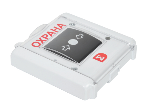 Корпус имеет откидную прозрачную крышку. Для возврата ИР-Охрана в дежурный режим после передачи тревожного извещения и перевода приводного элемента (кнопки) в исходное состояние необходимо нажать на кнопку в специальном отверстии на корпусе с помощью ключа, либо металлического стержня диаметром не более 3 мм.