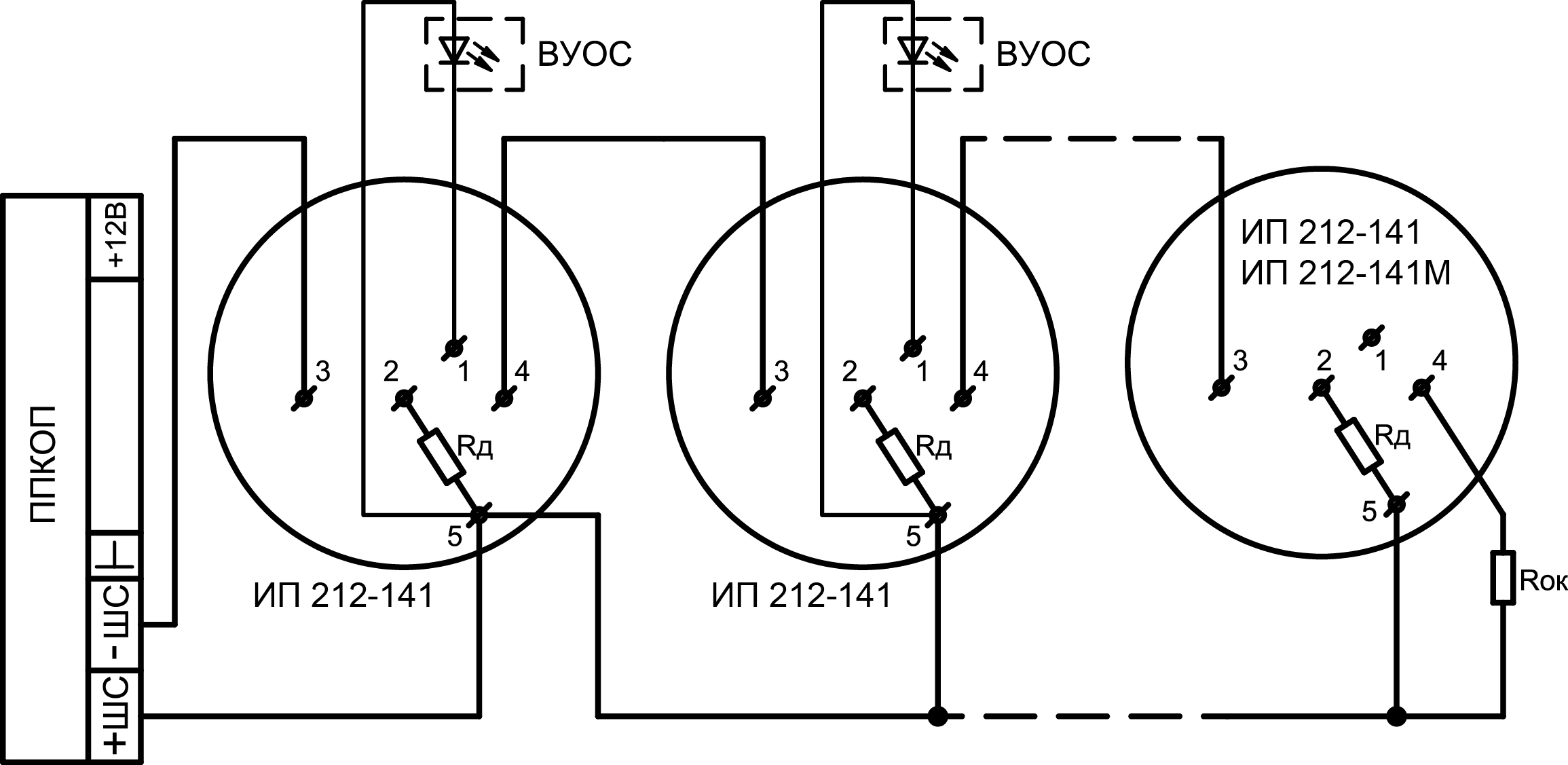 Если не требуется функция двойной сработки, то добавочный резистор Rд не устанавливается. При этом приемно-контрольный прибор должен иметь функцию ограничения тока в режиме «Пожар» до 20 мА во избежание выхода из строя извещателя.