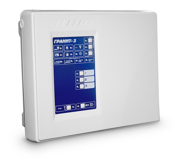 Гранит-3 — многофункциональный прибор обеспечения безопасности на объекте, обеспечивает 3 зоны охраны. Прибор реализует функции охранно-пожарной сигнализации, также может работать как контроллер доступа, предоставляющий проход в помещение по электронным ключам Touch Memory, Proximity-картам, брелкам, цифровым паролям.