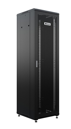 Напольный универсальный серверный шкаф SKAT TB-22R660PF-B предназначен для установки различного сетевого оборудования стандарта 19 дюймов (по ширине 485 мм), крепление которого соответствует требованиям ГОСТ 28601.2–90 (МЭК 60297). Пассивное и активное сетевое оборудование крепится на вертикальные 19” направляющие шкафа друг над другом. Доступ к оборудованию осуществляется со стороны передней и задней двери, а также съемных боковых стенок шкафа. Передняя дверь – перфорированная. Задняя дверь – сплошная металлическая. Боковые стенки съемные