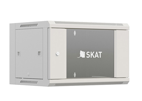 Настенный универсальный серверный шкаф SKAT TB-6W645GF-G предназначен для установки различного сетевого оборудования стандарта 19 дюймов (по ширине 485 мм). Шкаф оборудован стеклянной передней дверью. Пассивное и активное сетевое оборудование крепится на вертикальные 19” направляющие шкафа друг над другом. Доступ к оборудованию осуществляется со стороны передней двери, а также съемных боковых стенок шкафа.