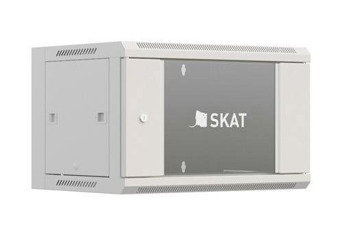 Настенный универсальный серверный шкаф SKAT TB-6W660GF-G предназначен для установки различного сетевого оборудования стандарта 19 дюймов (по ширине 485 мм). Шкаф оборудован стеклянной передней дверью. Пассивное и активное сетевое оборудование крепится на вертикальные 19” направляющие шкафа друг над другом. Доступ к оборудованию осуществляется со стороны передней двери, а также съемных боковых стенок шкафа.