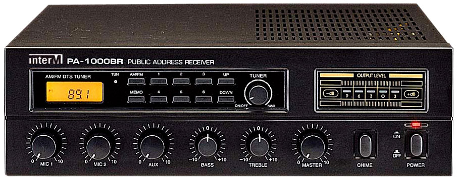 INTER-M PA-1000BR — трансляционный усилитель с тюнером для систем озвучивания, радиотрансляции, громкой связи.