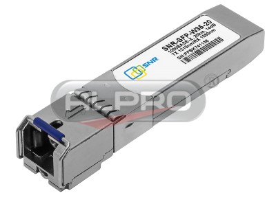 SNR-SFP-W35-20 — одноволоконный оптический модуль с форм-фактором SFP для 1G Ethernet, соответсвует стандарту 1000Base-BX. Предназначен для работы в одномодовом оптическом волокне (Single mode fiber, SMF), максимальная дальность 20 км, оптический бюджет 14 dB, SC-коннектор, рабочая длина волны Tx/Rx: 1310/1550 нм. Соответствует рекомендациям SFF-8431 Multisource Agreement (MSA).