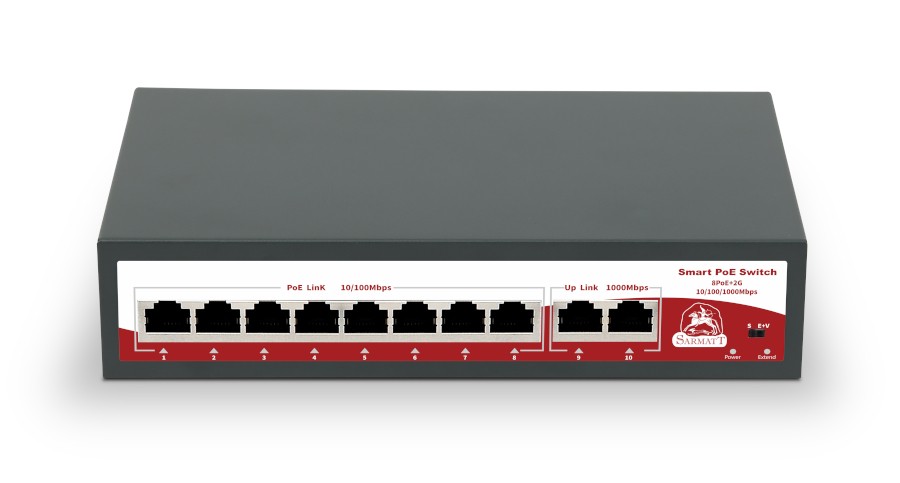 Sarmatt SR-PS0820GBL — 10-портовый неуправляемый РоЕ-коммутатор.