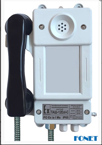 Шахтный телефонный аппарат ТАШ-12ЕхI-С взрывозащищенный без номеронабирателя, со световой индикацией вызова предназначен для обеспечения устойчивой телефонной связью в шахтных сетях.