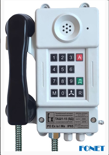 Взрывозащищенные шахтные телефонные аппараты ТАШ1-15(ВД) с номеронабирателем предназначены для обеспечения устойчивой телефонной и громкоговорящей связью, а также аварийной сигнализации в шахтных сетях.