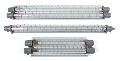 Люминесцентные лампы и пускорегулирующая аппаратура крепятся на элементах светильника образующие единую раму, и вставлены в стеклянную трубку. Стеклянная трубка выдерживает нагрузку 4Дж, имеется ряд перегородок из нержавеющей стали, для защиты стекла от механических воздействий.
