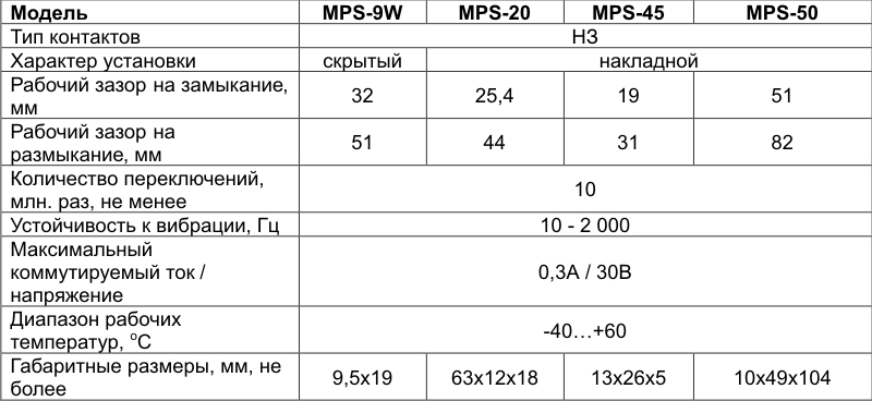 EMPS-50 – в отличие от MPS-50 имеет 4 провода для подключения, рабочий зазор – 55 мм.